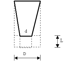 Em primeiro lugar há de ser considerado que o eletrodo depois de um certo tempo adquire o perfil da figura 1. O eletrodo vai-se afinando a medida que chega à ponta devido à oxidação lateral. A porção de grafita que está em determinado momento na ponta do eletrodo já esteve algumas horas ( ou dias ) antes na parte superior do mesmo e sofreu durante todo esse tempo um desgaste lateral que diminuiu o diâmetro de D para d. Apesar que a oxidação está desgastando o eletrodo, o consumo efetivo só vai ser computado a medida que o comprimento do eletrodo diminua ( exceto no caso que o eletrodo sem circulação de corrente permaneça tanto tempo dentro do forno como para se consumir totalmente em forma lateral, o que seria um caso irreal ).